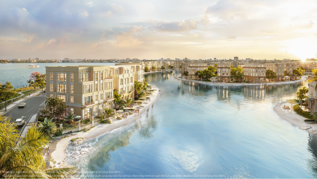 - Bãi biển nhân tạo nội khu dài hàng km: Thiết kế ôm sát mặt nước, mang đến trải nghiệm nghỉ dưỡng chuẩn Maldives ngay giữa lòng đô thị.